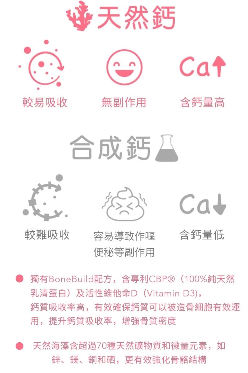 Contains natural red algae calcium from Iceland which naturally contains bioactive calcium, magnesium and other trace elements.