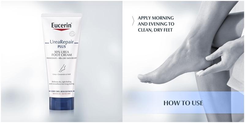 Eucerin UreaRepair Plus 10% Urea Foot Cream, a fast-acting formula that nourishes the skin for up to 48 hours.