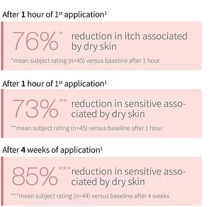 Clinically proven to reduce itchiness and irritation associated with dry skin in 1 hour