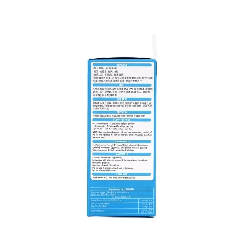 Fish-shaped chewable softgel with a unique ‘soft and chewy’ texture : Specially designed to improve children’s palatability, this ‘soft and chewy’ softgel is easy-to-take and easy-to-digest.